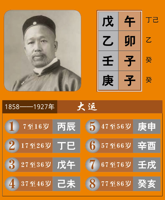 然而,自古伤官和正官不两立,法律制度属于正官,民主权力属于伤官,他早年行财运、中年行官运,与自己的伤官格局相悖,因此一生不得志。
