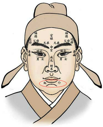 奴仆宫指下巴地阁的部位,嘴角下方两侧,即在地闾地库及肋颐部位,该宫是用来判断一个人人际关系状况的,诸如个人与同事、朋友、上司、部属等之间的关系以及他们对自己人生的发展是否有帮助。所以,通过奴仆宫也可以看出自己的事业运。