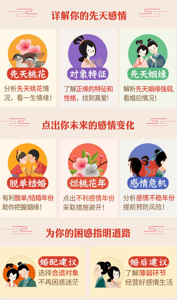 预测内容:一生婚姻感情详批